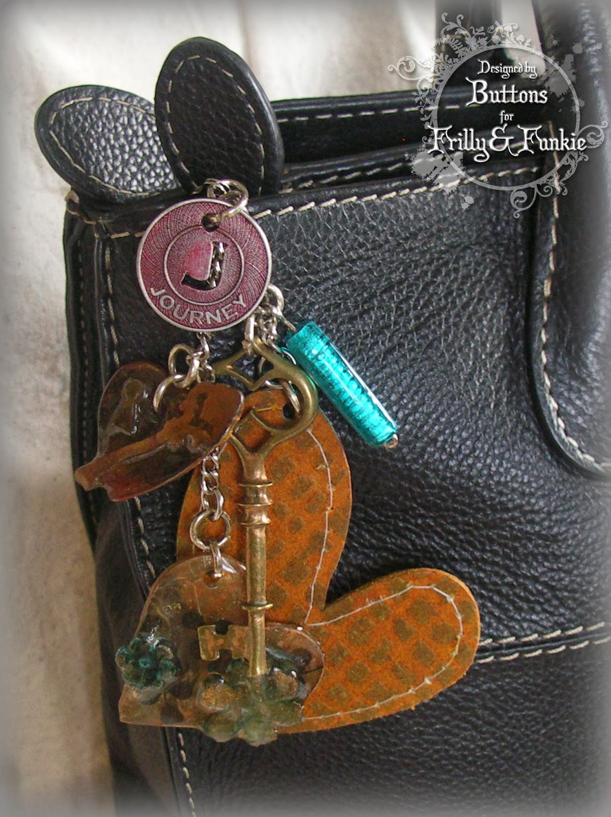 The fun doesn't stop there either. You can use the chunkier metal charms on home decor, jewellery and other decorative items. Taking inspiration from a Tammy Tutterow tutorial HERE, I created some bag charms a few months ago and just couldn't bear to part with this one!