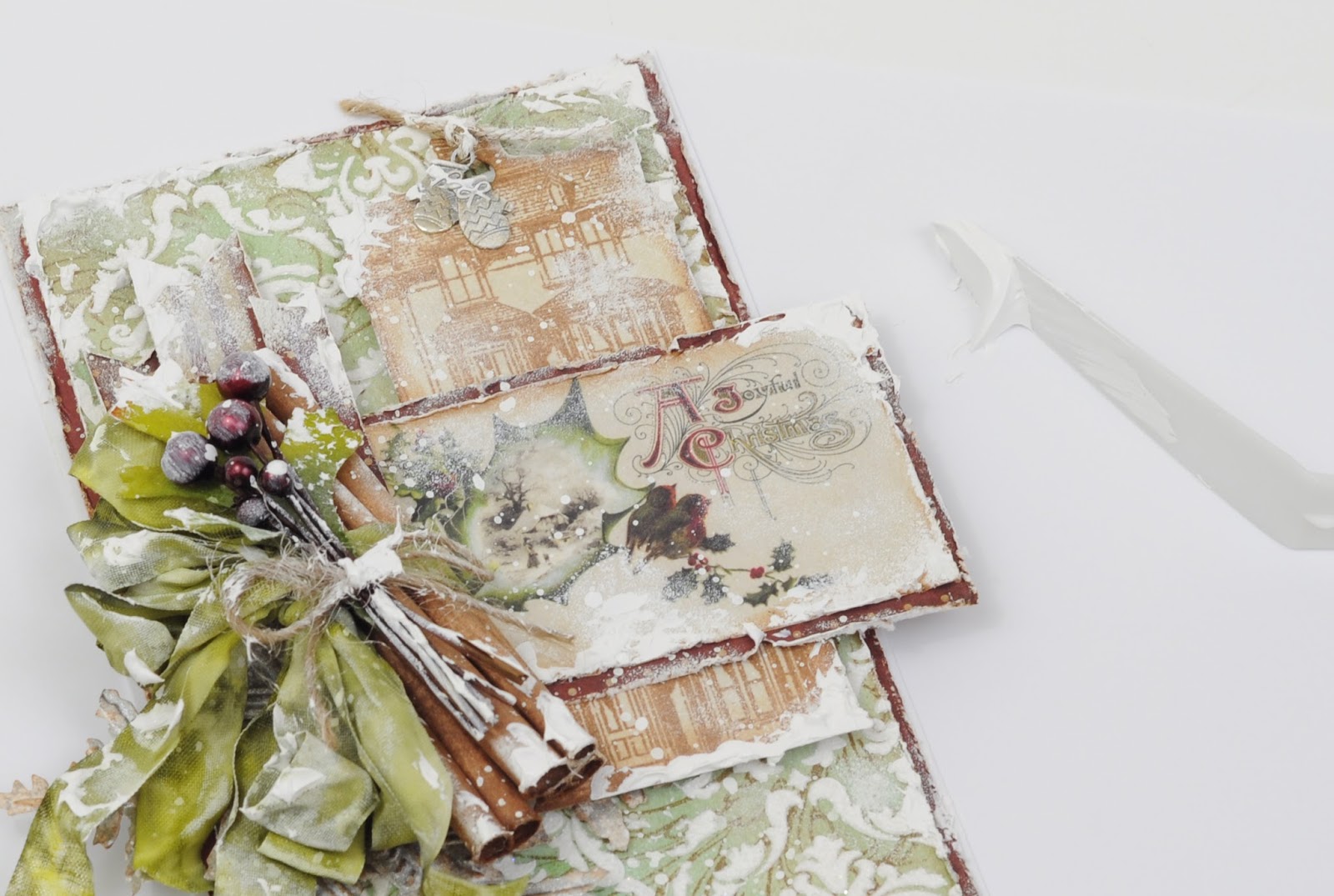 ReplyDeleteA great step by step Pamellia :-) Wonderful details in your Christmas project and I love the way you rolled the cinnamon sticks....very clever. Thank You for sharing the details of your snowy backgrounds too........I really must make a start on my Christmas cards