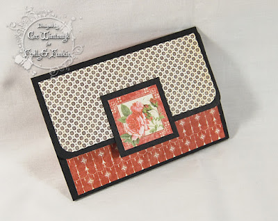 Next I made a really simple pop-up gift card holder using black card stock and paper from the Mon Amour collection.