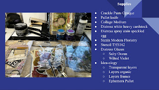For the background, I am going to be stenciling with some Distress Crackle Paint to create a faux glass, crackle texture by combining the crackle paste with a Distress glazes. Here I am spreading the Crackle Paste Opaque with one of the Ranger Tim Holtz palette knives. The Texture Paste spreads with the consistency of butter. On average I have found the Texture Paste will take approximately 20 to 30 minutes to dry.
