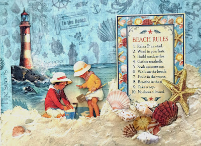 By the Sea is a fun collection for making beach house decor and gifts. So I thought I'd make a canvas posting the beach rules. The canvas is a perfect size at 12" x 9". The Beach Rules is one of the cut-aparts included in the collection. Wouldn't this be cute to hang at a beach cottage?