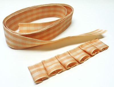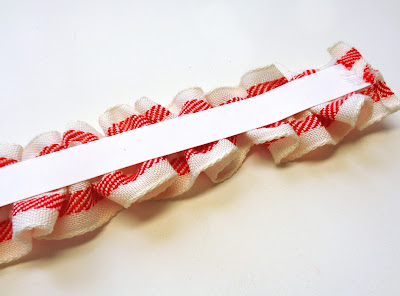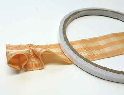 3. Add strip of plaid ribbon (remove wires from edges first)