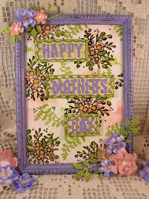 It's Linda, the Funkie Junkie, here this week to share a sweet Mother's Day frame. This was such a fun project to make! I wanted to make it very girly and retro so I set out to make a chintz fabric type of background using a Wendy Vecchi Stamp It, Stencil It image. And don't forget, you can double click any image to get a great close up.