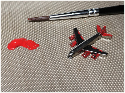 Step 22: Paint parts of an idea-ology adornment airplane with ruby heavy body paint by Dina Wakley. When almost dry, rub some of the paint off.