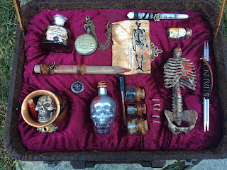 Everything in this Vampire Hunting Kit was altered, painted of handmade. The dissection tools were leftover from school, its the real deal.